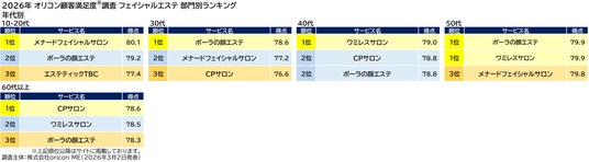 オリコン株式会社(本社:東京都港区 代表取締役社長:小池 恒、略称:オリコン)は、グループ会社である株式会社oricon MEが、実際のサービス利用者を対象に第三者の立場で実施した『エステサロン(フェイシャルエステ/ボディエステ)』の顧客満足度調査の結果を、2026年3月2日(月)14時に「オリコン顧客満足度(R)」公式サイト内にて発表いたしました。