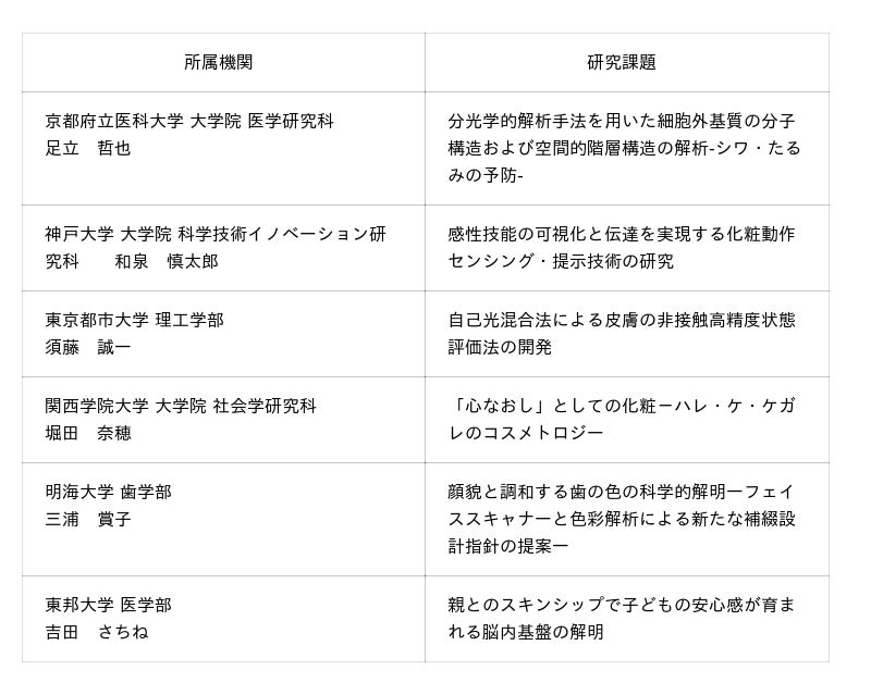 コスメトロジー研究助成 受賞者