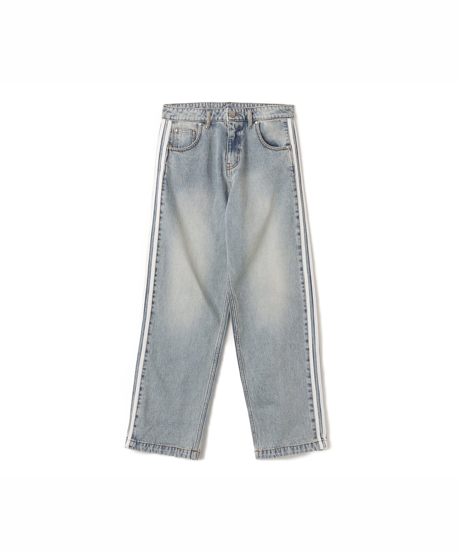 ウォッシュ加工を施したデニム生地は、さりげない格子状の質感を浮かび上がらせ、ヴィンテージライクでラフなムードを演出。クラシックなスポーツウェアのフォルムに、ストリートらしい無骨さと存在感を加えています。