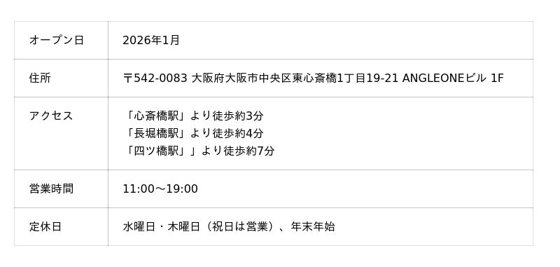 株式会社ユートレジャー(本社:東京都新宿区、代表取締役社長:青木 興一、株式会社ケイ・ウノの連結子会社)は、直営店として「U-TREASURE心斎橋」を2026年1月オープンすることをお知らせします。