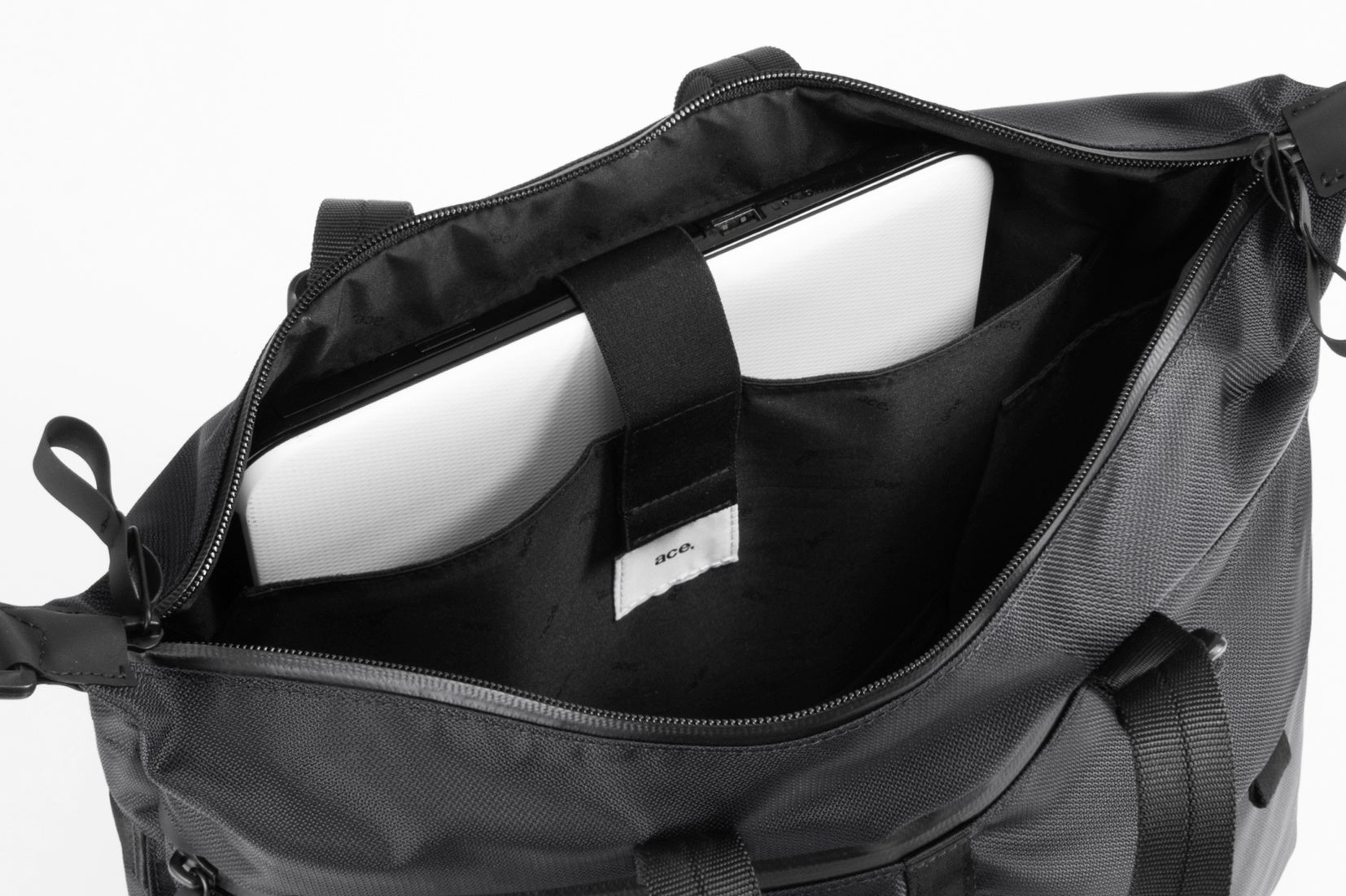 バックパック、ボディバッグ、トートバッグにはノートPCまたはタブレット端末用の収納部を装備。