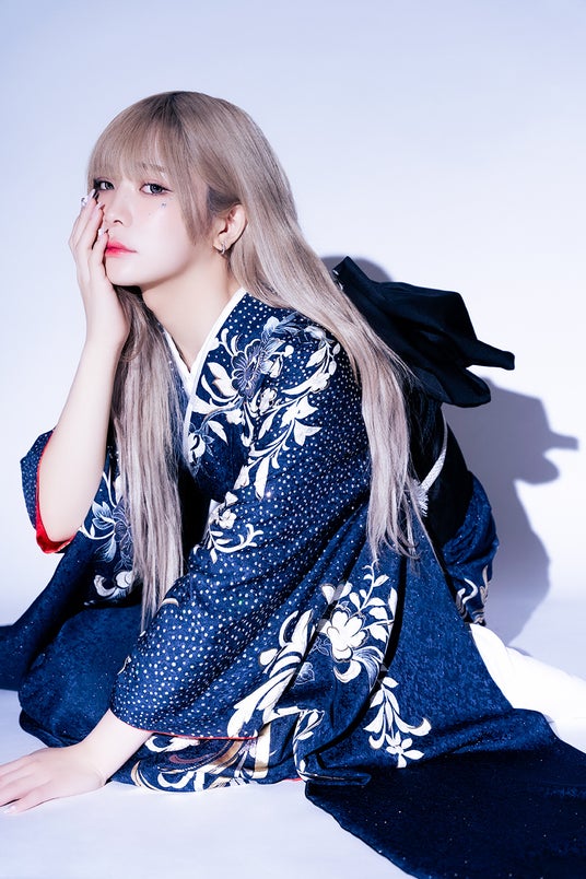 グリッターが散りばめられた振袖をご着用いただき、クールさを演出しつつかわいさをプラス。