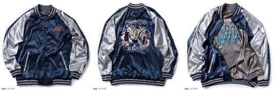 本商品は、光沢のあるサテン地に、和柄テイストのダイナミックなイラストを繊細な刺繍で表現したリバーシブル仕様のスカジャンです。