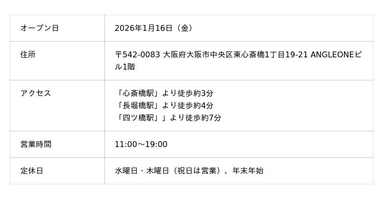 株式会社ユートレジャー(本社:東京都新宿区、代表取締役社長:青木 興一、株式会社ケイ・ウノの連結子会社)は、関西エリアの旗艦店となる「U-TREASURE コンセプトストア心斎橋」を国内2店舗目の直営店として2026年1月16日(金)にオープンします。