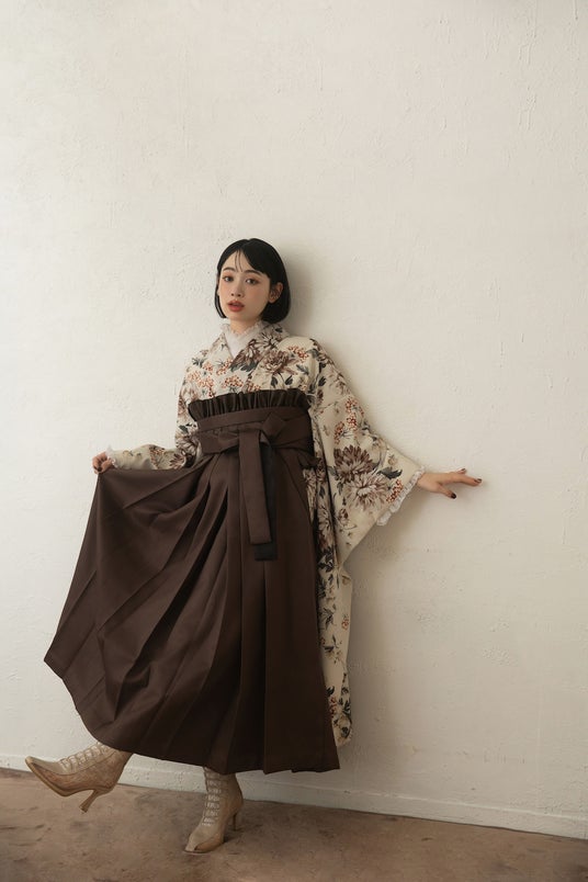 絶妙に重なったフリルがドレッシーな印象のティアードフリル袴。発表直後より大人気の一着。