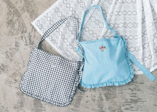 店舗でコラボアイテムをお買い上げの方に、ベストと同じ刺しゅうとフリルがあしらわれたバッグをプレゼント。