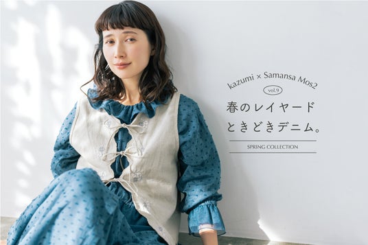 ナチュラルな着こなしやライフスタイルをSNSで発信し、人気を誇るモデルのkazumiさん。Samansa Mos2では2021年よりコラボ企画を実施し、毎回好評いただいております。2025年のSpring Collectionでは、天然素材をベースにチュールやデニム素材をミックスし、kazumiさんコラボではおなじみのレイヤード術を加え、今までのガーリースタイルをアップデートさせた“大人なガーリー”スタイルを提案いたします。