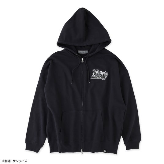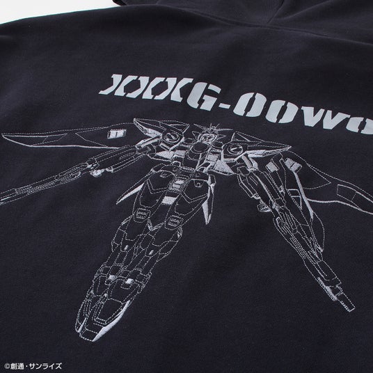 『新機動戦記ガンダムW』30周年を左胸に刺繡で表現したフーディー。背面にもガンダムウイングゼロを大きく刺繍を施した豪華仕様。