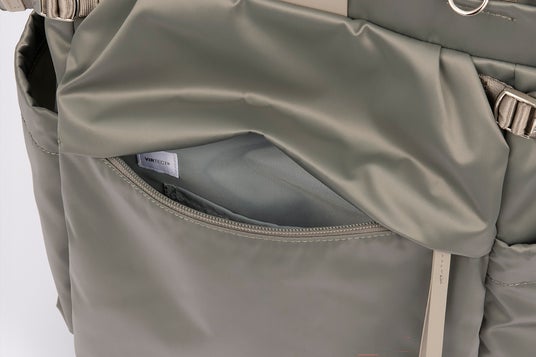 外装に、生産過程に発生する廃材を再生した100%リサイクルナイロン「Mipanregen(R)」※を、内装に「リサイクルポリエステル」を使用。