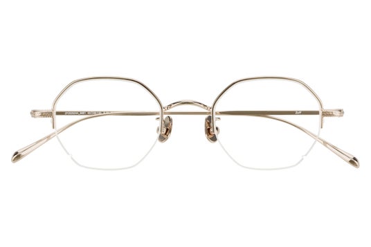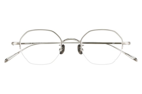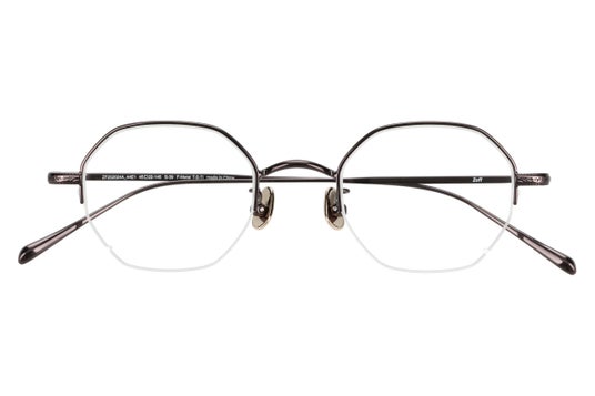 テンプルにβチタンを使用したオールメタルの小さめハーフリム。かけ幅を広くする仕様で小ぶりでもかけ心地抜群。