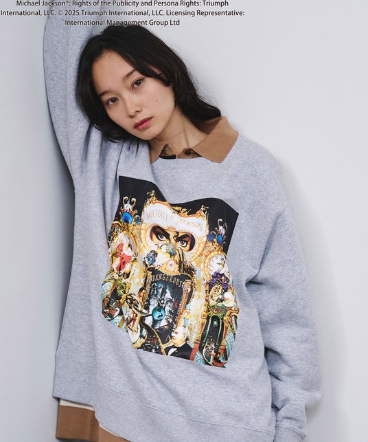 今回のコレクションでは、前面に「KING OF POP」の文字とコンサートパフォーマンス画像をデザインしたスウェットシャツ、前面にアルバム『Dangerous』の象徴的なアートワークをプリントしたスウェットシャツ、ライブコンサートパフォーマンス中にマイケル・ジャクソンが着用していたバーシティジャケットの画像を組み合わせたグラフィックのロングスリーブTシャツ、「Scream」のショートフィルムの静止画を使用したロングスリーブTシャツ、そしてマイケル・ジャクソンの6枚の象徴的なソロスタジオアルバムのジャケットをフィーチャーしたグラフィックのスウェットシャツがラインナップされています。