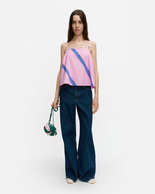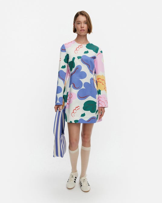 スプリングサマー 2026コレクションでは、引き続き「プリント作りのアート」をテーマに掲げます。マリメッコのプリント作りに息づく職人技にインスピレーションを得た今シーズンのコレクションは、エネルギッシュで喜びに満ちたサマースタイルを提案します。遊び心あるプロポーションや調和のとれた構成、そして花柄とダイナミックなストライプの掛け合わせによって、女性らしさと実用性が自然に溶け合うデザインです。