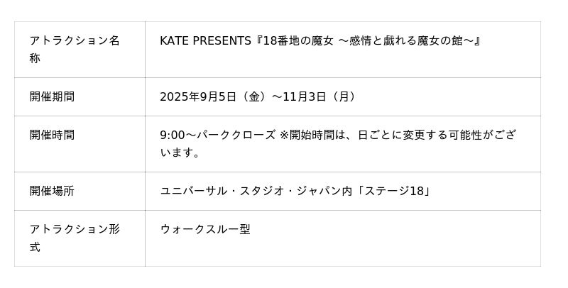 ■KATE PRESENTS『18番地の魔女 ~感情と戯れる魔女の館~』アトラクションについて