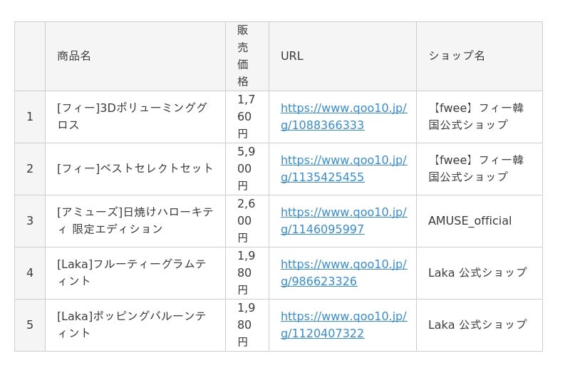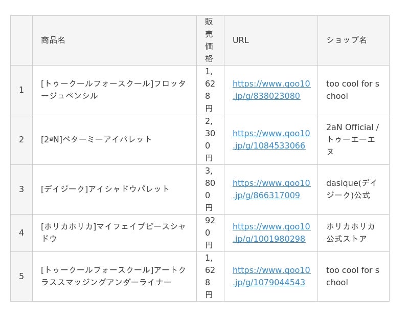 Qoo10(https://www.qoo10.jp/)サイト上、「シャンプー」「リップメイク」「アイシャドウ」「チーク」カテゴリーの公式ショップ各販売個数に基づいたランキングです。