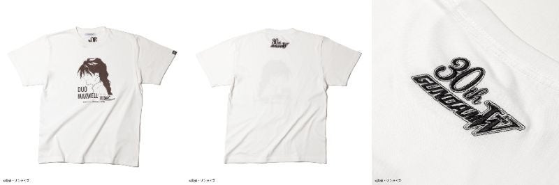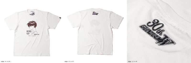本商品では、今年で30周年を迎える『新機動戦記ガンダムW』の新キービジュアルを使用したデザインのTシャツ、新イラストを使用したガンダムパイロットの5人の横顔がデザインされたTシャツ全6種を展開致します。すべてのTシャツの背面には、30周年記念ロゴが刺繍されています。