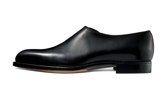 この一枚革を木型に吊り込み、立体的な靴の形へと成形していきますが、パーツが単純であるがゆえに形出しは非常に難しく、 通常よりも長い時間をかけて木型の形状を定着させる必要があります。