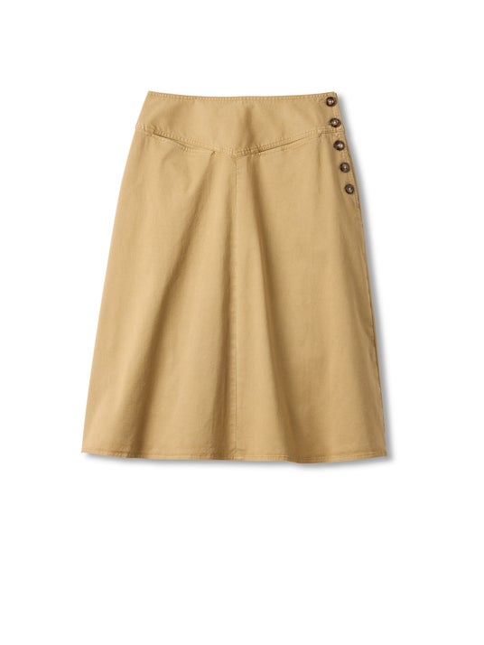 - ハリのあるコットンツイルがクラシックなAラインを作り出し、サイドのボタンやバックのベルトなどユーティリティディテールを感じる80年代のReissueであるボタンミディスカート。