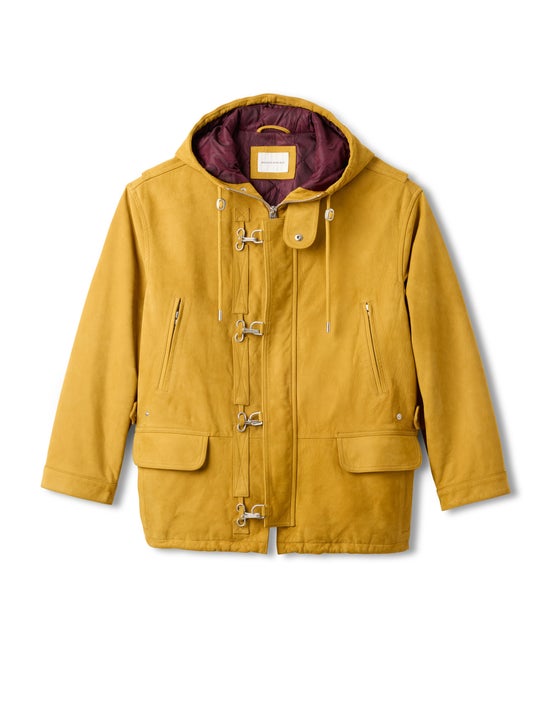 - 90年代のコレクションからインスパイアされたヌバックファイヤーマンジャケットは、鮮やかなイエローが象徴的。