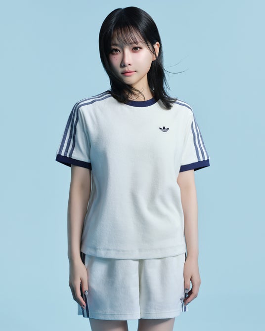 夏の定番人気のテリーシリーズ。オフホワイトxダークブルー、ダークブルーxライトブルーのカラーリングが、夏のコーディネートを爽やかに演出。テリー素材ならではのソフトな肌触りに、ルーズフィットで動きやすさとリラックス感を両立。半袖の上部に配したスリーストライプスと、胸元のアイコニックなトレフォイルが、さりげなく存在感をプラス。