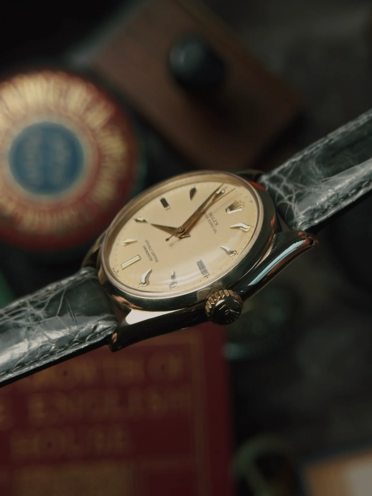 1950年に発表されたRef. 6564は、ロレックスの独創的な文字盤の実験性を体現したモデルです。クロワゾネダイアルが製作され、星型インデックスをはじめとする独自のアワーマーカーが採用されたことで、コレクターズアイテムとして高い人気を博しました。