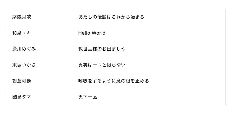 茅森月歌、和泉ユキ、逢川めぐみ、東城つかさ、朝倉可憐、國見タマ