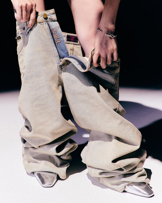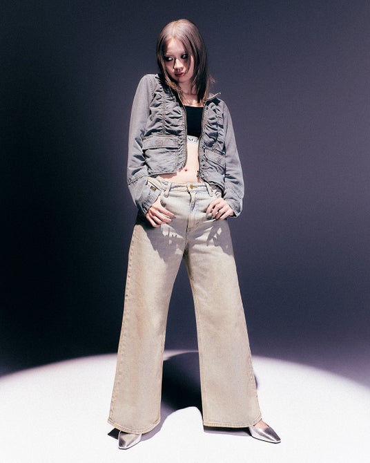今回のコレクションでは、Leeならではのこだわりが詰まった生地と加工に、X-girlのロゴを随所にあしらったデニムパンツ1型を展開します。程よく女性らしい、ルーズな美シルエットも魅力のひとつです。