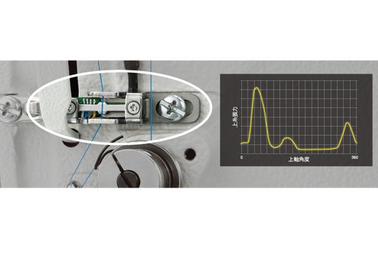 今回新たに標準搭載した張力監視機能では、一針ごとの張力を記録し、そのデータを元に閾値(しきいち)を自動的に生成することができる。これにより、硬さや厚みの異なる生地を縫製する場合でも、張力の変化を細かく検知し、縫製中の異常を高い精度で検出することができる。