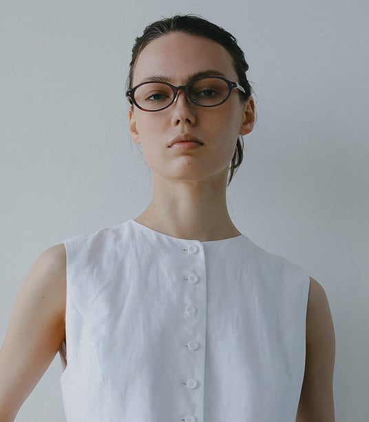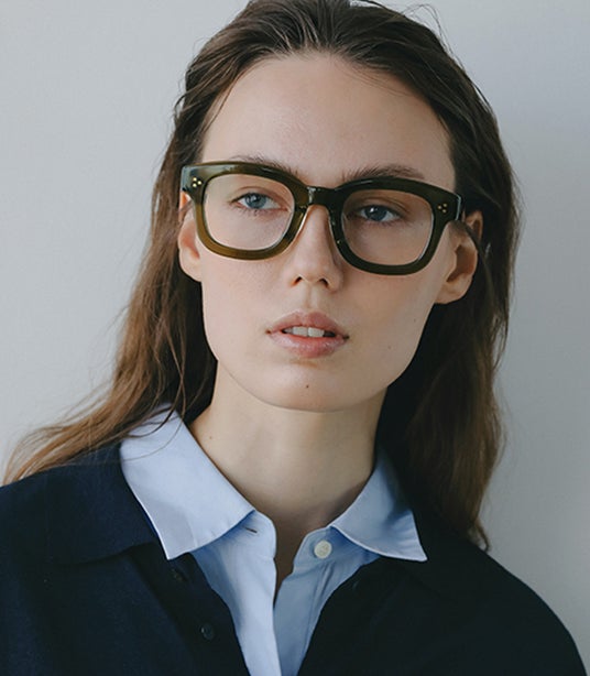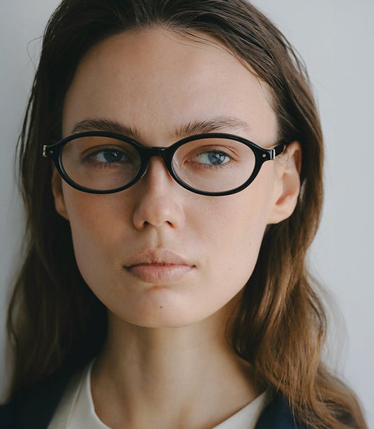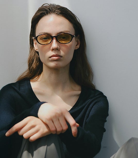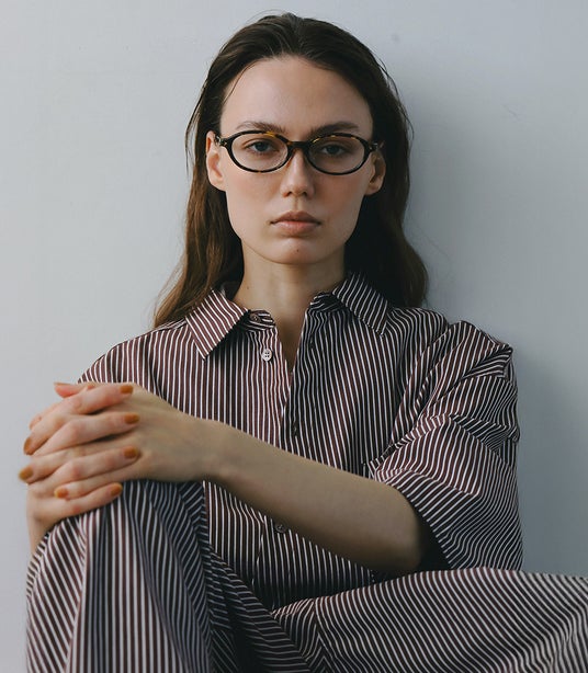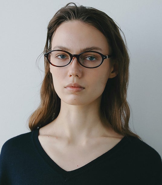 スタイリングのアクセントに、トレンド感や知的な印象を添えるオーバルフレーム。