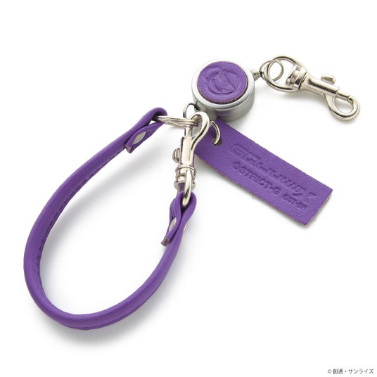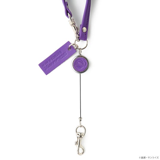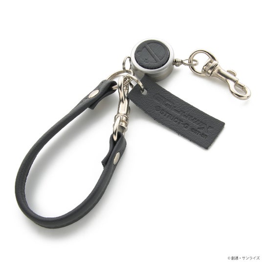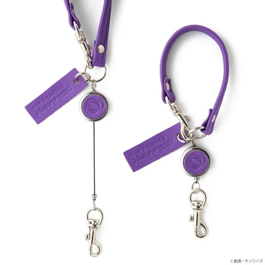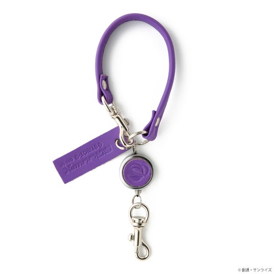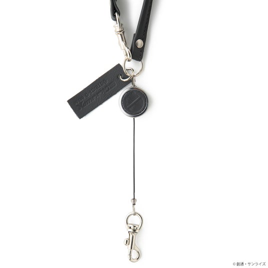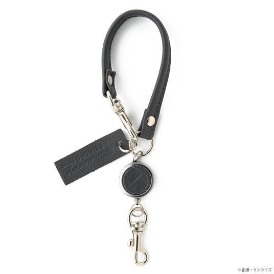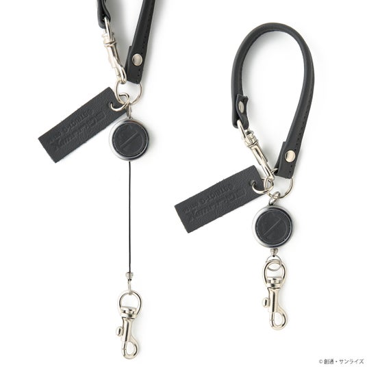 『機動戦士Gundam GQuuuuuuX』に登場するハロとポメラニアンズマークをモチーフにした伸縮するリール付きの本革製のショートストラップ。お手持ちのIDケースやパスケースなどのハトメ穴やDカンに取り付けて使うことができます。リールが伸縮するので自動改札などのタッチがとてもスムーズになります。リールは最長で約40cmまで伸長し、手を離すと自動で巻き戻ります。バッグの持ち手などにさげて使えるように、ストラップ部分はナスカンで着脱が可能になっています。