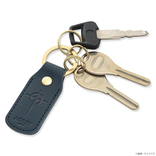 『機動戦士ガンダム 閃光のハサウェイ』に登場する組織マフティーのマークをモチーフにしたドックタグ型の革がポイントのキーホルダーです。太い線の二重リングに、さらに3つ(中1つ・小2つ)の二重リングがついており、用途に応じて分けて装着できます。バッグに入れてもレザータグが鍵の目印になってくれます。記念日などちょっとしたプレゼントにもおすすめな逸品です。