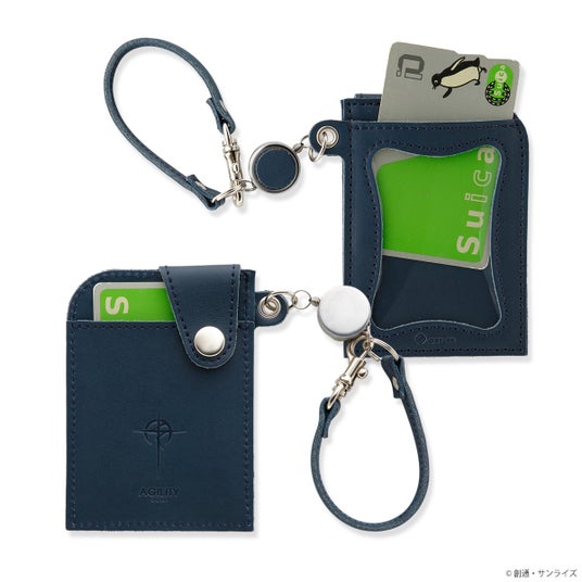 『機動戦士ガンダム 閃光のハサウェイ』に登場する組織マフティーのマークをモチーフにしたシンプルで使い勝手の良いパスケースです。 バッグの持ち手などに取り付けておけば、定期券の紛失を防ぐことができます。リールコードは約40cmまで伸長するので、ICカードをリーダーにかざすときも手間取ることがありません。 前面は額縁をイメージした、曲線の美しい透明窓。定期券の印字やカードのデザインが確認できるようになっています。背面側は脱落防止のスナップホック付きのポケットがあり、こちらもカードサイズです。※前後両面に別々のICカードを入れてご利用になられたい場合は、市販のセパレーターを併用してください。