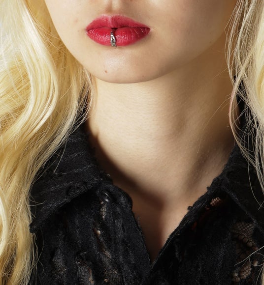 唇の端やセンターで着装、真鍮