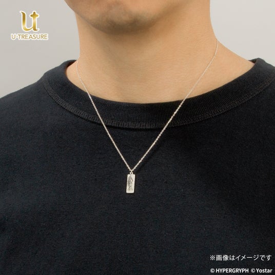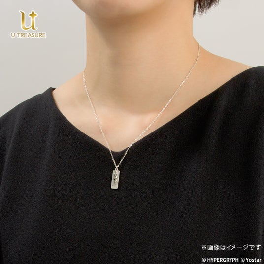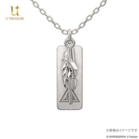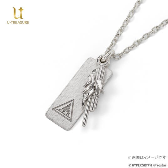 ウィシャデルの武器をチャームのデザインに落とし込んだプレートネックレス。プレート部分には所属陣営(バベル)のエンブレムを刻印しました。