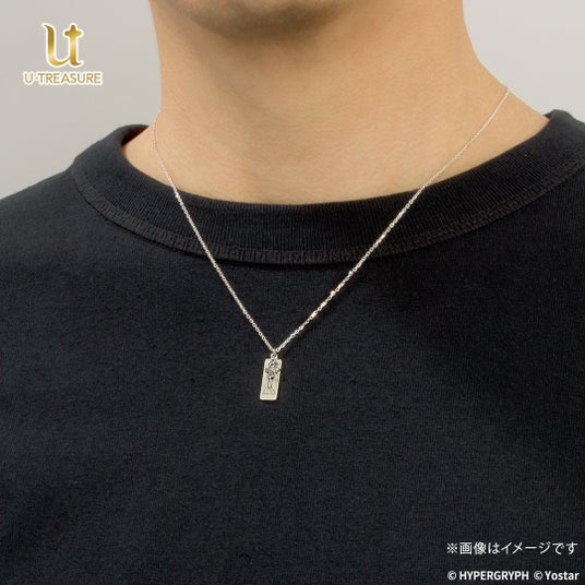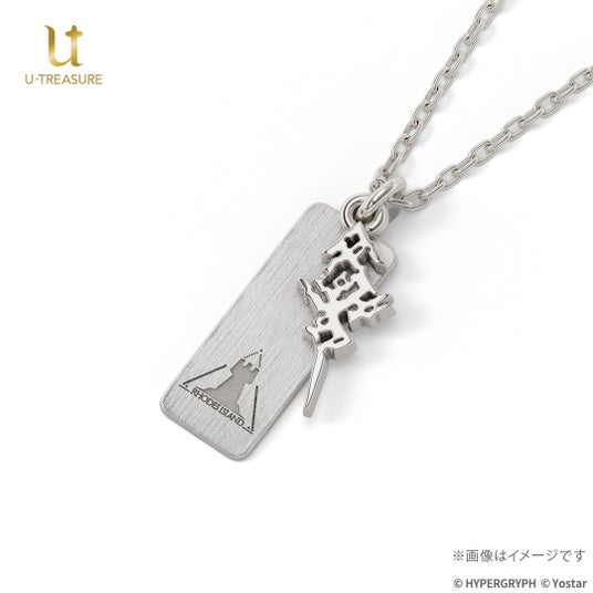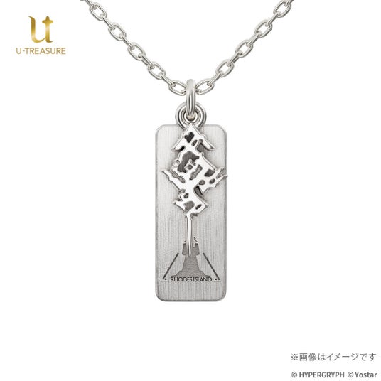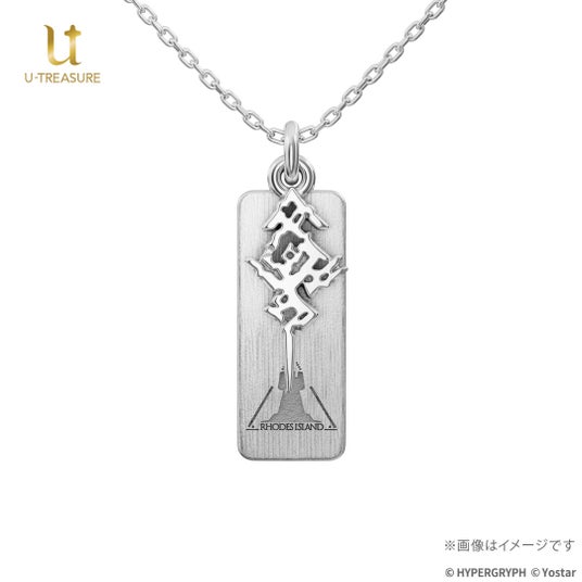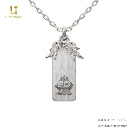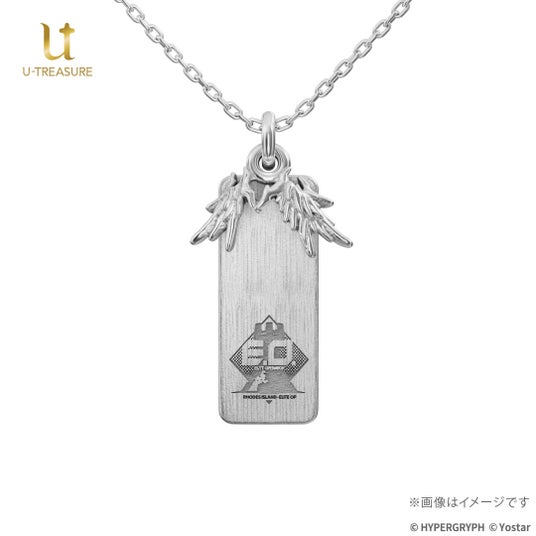 ロゴスの耳羽をチャームのデザインに落とし込んだプレートネックレス。プレート部分には所属陣営(ロドス・エリートオペレーター)のエンブレムを刻印しました。