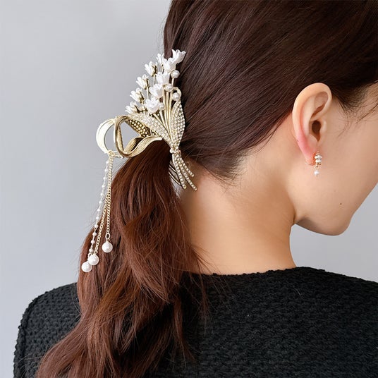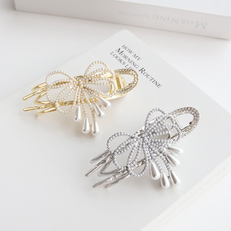 商品名:パールリボンヘアクリップ