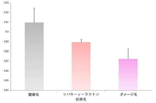 毛髪水分残量の改善ツバキ-γ-ラクトンを塗布することで、毛髪水分残量が健康毛に近づきました。
