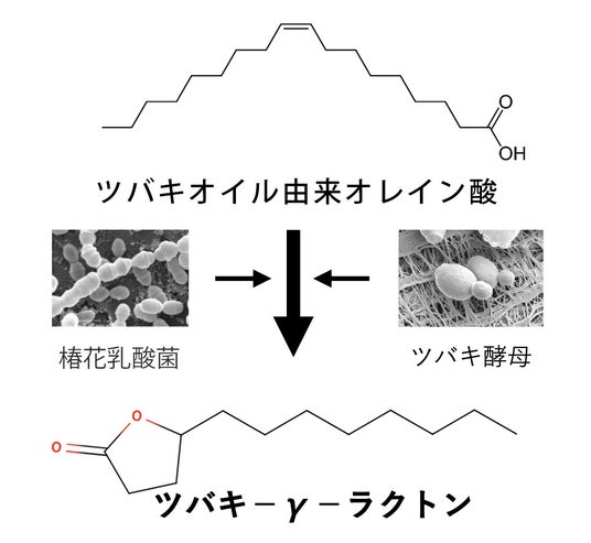 ツバキオイルに豊富に含まれるオレイン酸に着目し、ツバキの花から採取した乳酸菌と酵母によるマルチ発酵法により、ツバキ由来のツバキラクトン※を開発しました。毛髪への効果を期待して研究を進めたところ、ダメージ毛のキューティクル状態を改善することが明らかになりました。※ツバキ-γ-ラクトン