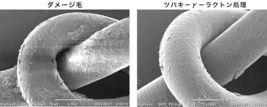 キューティクルの改善ツバキ-γ-ラクトンをダメージ毛に塗布することで、毛髪のキューティクルが改善することが確認されました。
