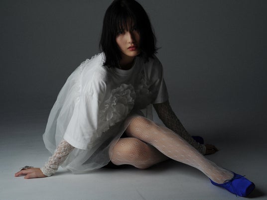 古着を解体し、新たな価値を持った一点物を生み出すリメイクを得意とする〈Yuumi ARIA〉。今回はオーガンジーやサテンなど、さまざまな素材を使用したブランドらしい独創的で遊び心のあるデザインのTシャツを製作しました。