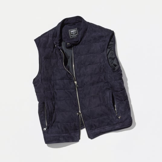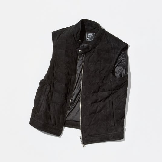 滑らかなラムスウェードを贅沢に使用したダウンベスト。