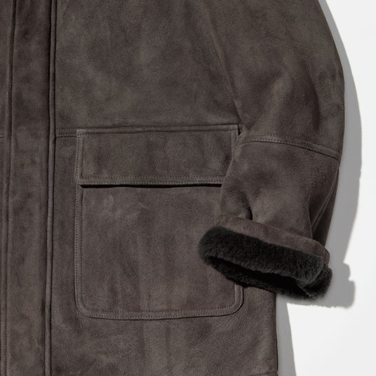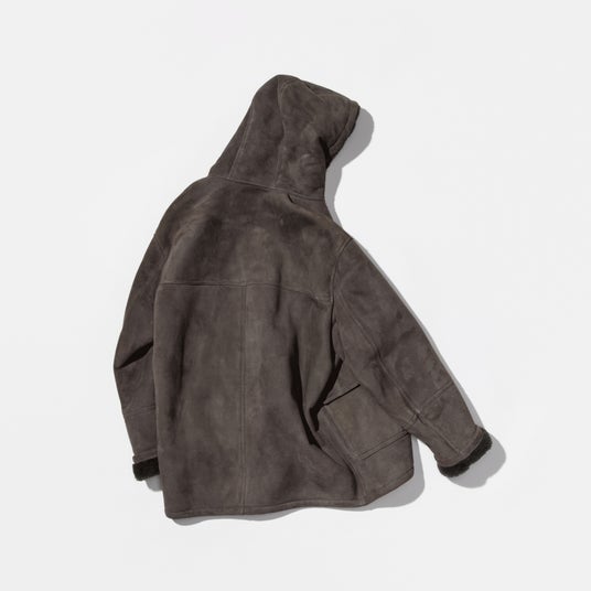 最高クラスのムートンを厳選し、軽さと防寒性を両立したフーデッドコート。