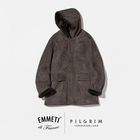 〈EMMETI(エンメティ)〉と〈TOMORROWLAND PILGRIM〉が再び協業。上質ムートンコートとラムスウェードのダウンベストを、今季の別注モデルとして先行公開します。