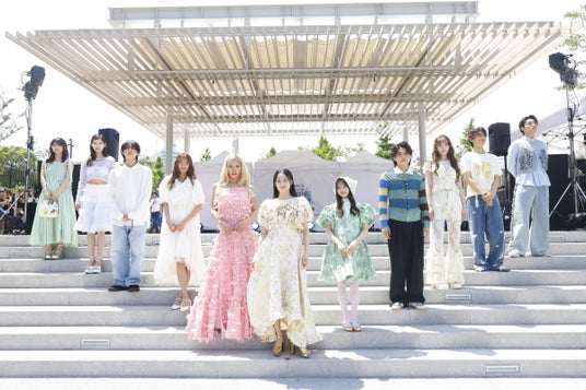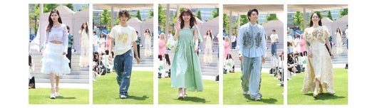 渋谷区が推進する“緑のある都市づくり”の想いを受け、渋谷の街にさまざまな夢が咲き誇るステージを・・・と願いを込めて「wish」をテーマにしたファッションショーを展開しました。トップバッターに、トップインフルエンサーに留まらず、アーティストとしても活躍の場を広げているとうあが、咲き誇るような華やかなピンクの花柄ドレスで登場!続いて、女優・タレントとして活躍する市川美織がふんわりと広がるグリーンのミニドレスを、宮武颯(WILD BLUE)が鮮やかなボーダーニットが特徴的なスタイリングを、池田優斗(WILD BLUE)が爽やかなフリルが施された白シャツスタイルを、今回が初ランウェイとなる高橋颯(WATWING)が蝶のデザインが入ったデニムと花柄Tシャツの明るく夏らしいコーディネートを、八村倫太郎(WATWING)がフリルをあしらったライトブルーの上下デニムのセットアップ姿を披露しました。そしてラストには、Z世代のファッションアイコンであるなごみが金の花柄刺繍と、胸元の立体装飾が目を引く、まるで女神のような上品で華やかなドレスで登場し、ランウェイを彩りました。
