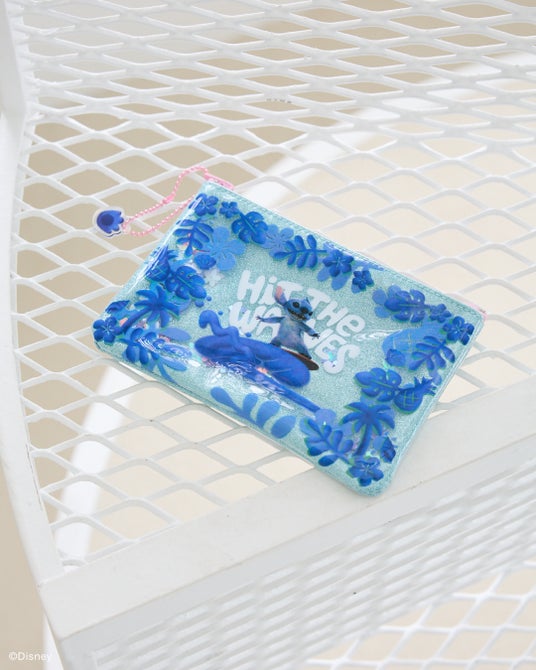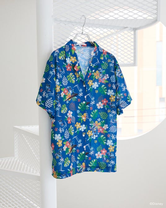 そのほか、メタリックなロゴに無邪気に飛びつく「スティッチ」をプリントした裏毛プルオーバー、羽織るだけでリゾート感がアップするアロハシャツ、夏らしいクリア素材ときらきらラメがポイントのビニールポーチも取り揃えております。