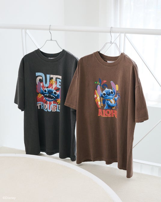 これからの夏シーズンに大活躍のTシャツは、『リロ&スティッチ』の世界観をふんだんに詰め込んだ4型をラインアップ。涼し気なシアー素材のラグランTシャツには、愛らしい姿の「スティッチ」をプリント。袖には、スティッチの足あとをプラスし、遊び心あるデザインに仕上げました。洗いをかけたような風合いが魅力のヴィンテージ風ピグメントTシャツと、個性なデザインのリメイク風Tシャツは、フラダンスを楽しむ様子やハイビスカスをモチーフにしたアートを施し、着映えするアイテムです。また、サーフィンを楽しむ姿をロゴ風に取り入れた、トレンドのゲームTシャツもご用意いたしました。