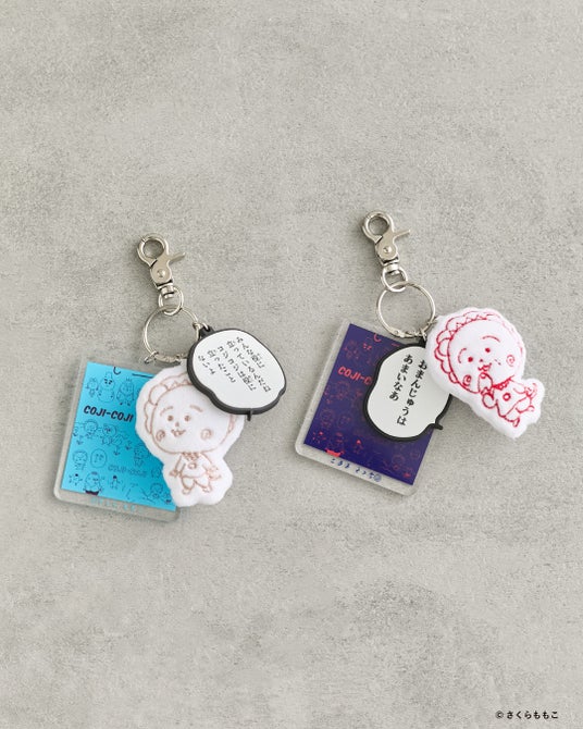 コジコジのマスコットと吹き出しラバーチャーム、コミック風絵柄のアクリルチャームが一つになったじゃらじゃらキーホルダー。バッグに付けるのはもちろん、ベルトループに付けて存在感を出すのもオススメ。