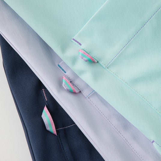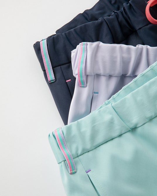 カラーに合わせた裏地やステッチ、ウエスト紐、動きやすさをサポートする裾スリットもポイント。さらに、オリジナルカラーのループをあしらい、細部までこだわりを詰め込みました。