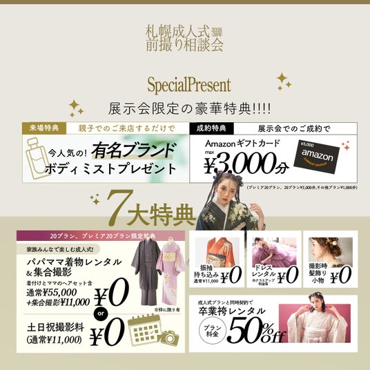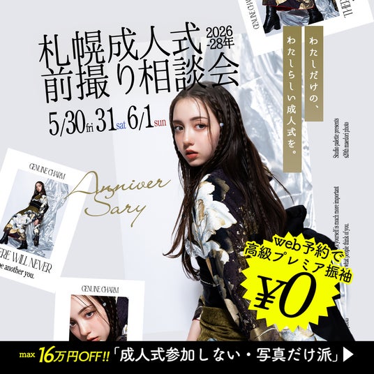 北海道のフォトスタジオ写真工房ぱれっと(本社/有限会社三景スタジオ)より、成人式の《前撮り・後撮り》に特化した「成人式前撮り相談会」を開催いたします。