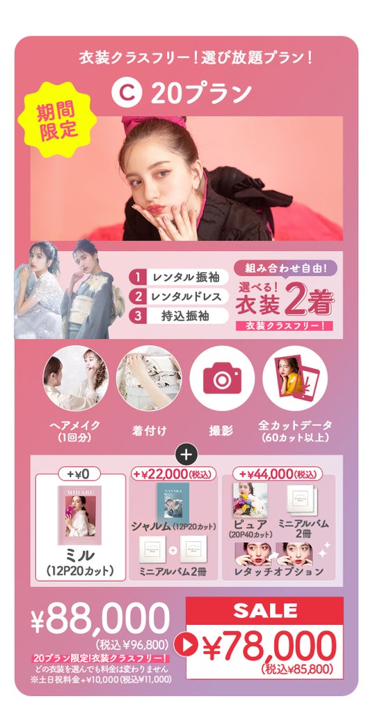 そんなこだわりの1着を、イベント限定特典にて追加料金無料でお召しいただくことが出来ます。