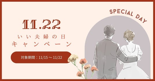 「PLACOLE & DRESSY」ブランドを展開する、冒険社プラコレ(本社:神奈川県鎌倉市、代表取締役CEO:武藤功樹)は、11月22日「いい夫婦の日」に合わせ、運営するECサイト「DRESSY ONLINE」にて期間限定 特別キャンペーンを実施いたします。